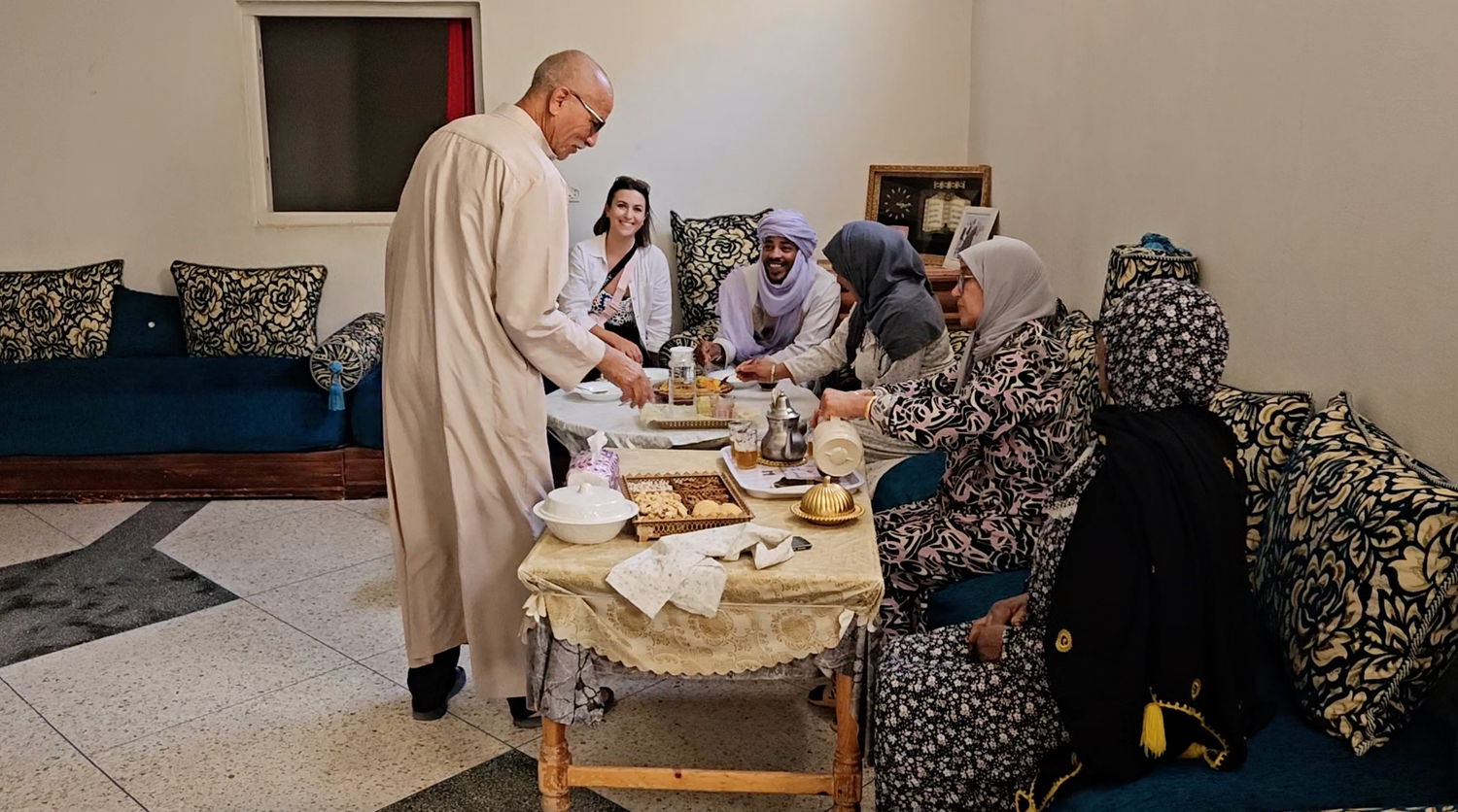 Esta alfombra vintage es más que una pieza hermosa: es una historia tejida a través del tiempo, llena de familia, tradición y momentos emotivos. Llegó hasta nosotros después de un día inolvidable en el que aprendimos sobre el proceso de fabricación de alfombras, compartimos té y disfrutamos de un almuerzo casero caliente con Naima y su hermano, Rachid. Mientras estábamos sentados juntos, la fotografía de su madre nos miraba desde una repisa, un silencioso recordatorio del legado que nos dejó.